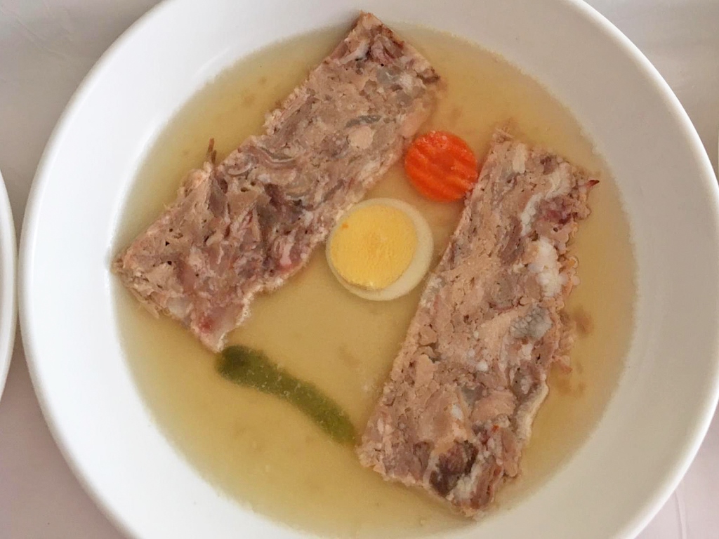 Gelée de ménage, pain paysan, moutarde